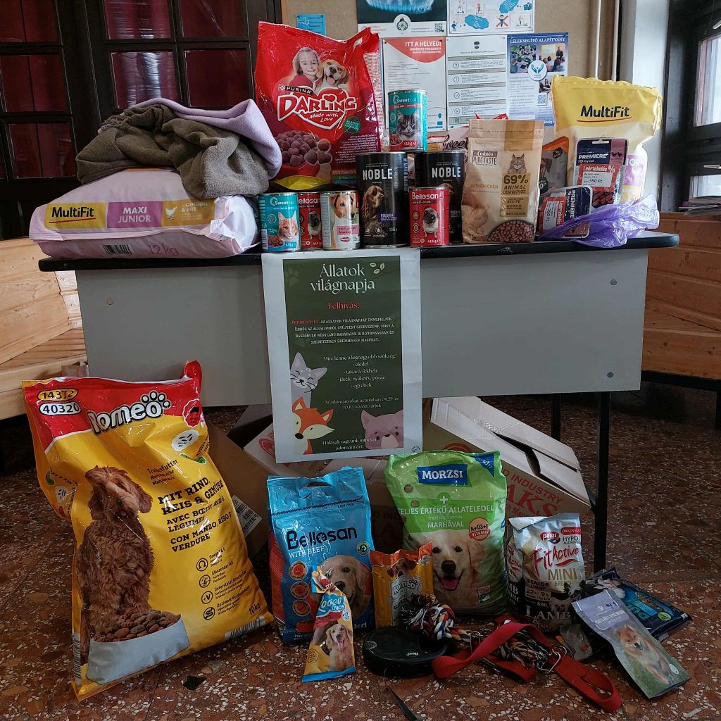 Az állatok világnapja alkalmából gyűjtést rendeztünk menhelyen élő négylábú barátaink számára, valamint a könyvtárban vetélkedőn vehettek részt diákjaink. Köszönjük a szervezést Kósik Mónika és Dr. Sopowné Balogh Elvira tanárnőknek, támogatóinknak, valamint iskolánk "Géniusz" Alapítványának!